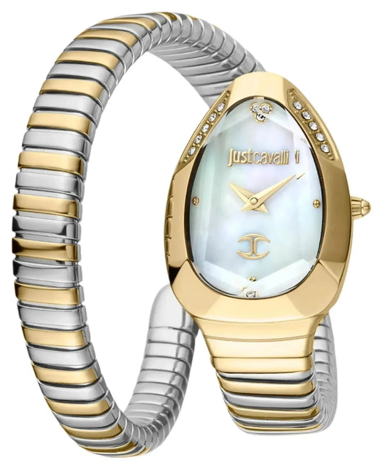 Just Cavalli Serpente Metallica Mother of Pearl Dial Two Tone Steel Strap Watch for Women - JC1L208M0065