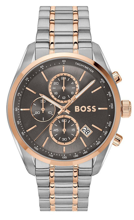 Hugo Boss Grand Prix Chronograph Grey Dial Two Tone Steel Strap Watch for Men - 1514252