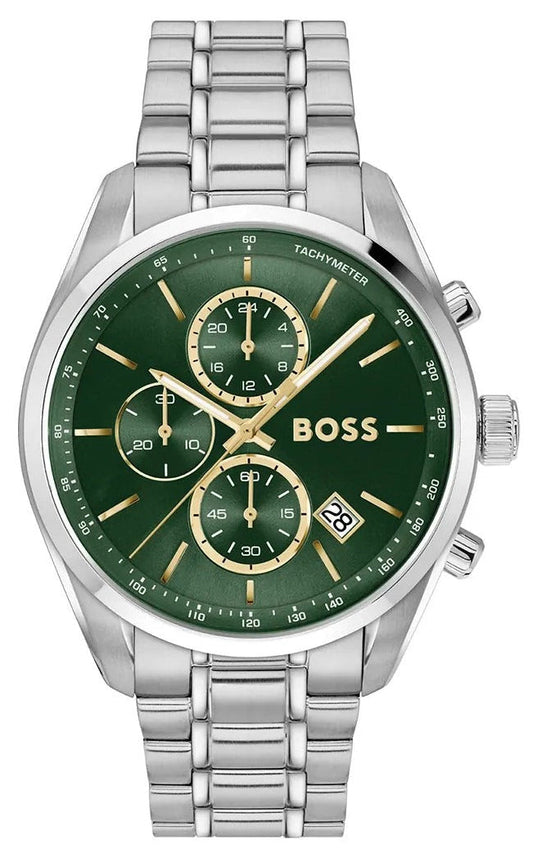 Hugo Boss Grand Prix Chronograph Green Dial Silver Steel Strap Watch for Men - 1514266