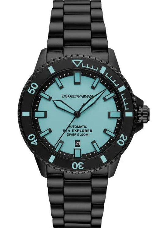 Emporio Armani Sea Explorer Turquoise Blue Dial Black Steel Strap Watch for Men - AR60084