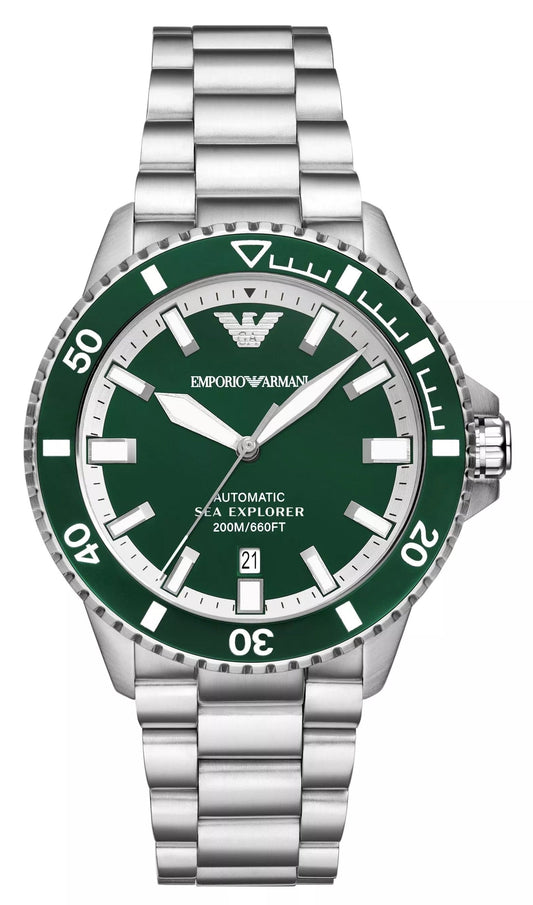 Emporio Armani Sea Explorer Green Dial Silver Steel Strap Watch for Men - AR60080