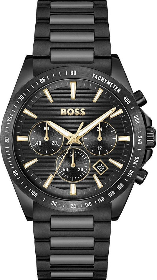 Hugo Boss Strike Chronograph Black Dial Black Steel Strap Watch for Men - 1514291