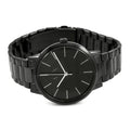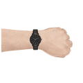 Bold and masculine, this Armani Exchange watch embodies modern minimalism. The all-black stainless steel case and bracelet exude a sleek, industrial vibe. With its 42mm round case, three-hand analog display, and scratch-resistant mineral crystal, it's both stylish and practical for everyday wear. The ideal blend of form and function.