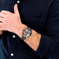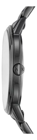Armani Exchange's 42mm watch features a Grey sunray dial with gunmetal stick indexes, three-hand movement and gunmetal Steel bracelet.