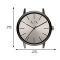 This Armani Exchange watch boasts a sleek grey dial and is designed for men. Expertly crafted with precision, this timepiece exudes sophistication and style. With a professional and objective tone, it's the perfect addition to any ensemble.