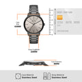 • Case Size: 42 mm, Dial Colour: Grey, Case material: Stainless Steel, Case Thickness: 10mm, Case Colour: Gunmetal.
