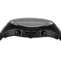 This Armani Exchange watch features a sleek black steel strap and a black chronograph dial. Perfect for any occasion, this watch combines style and functionality. Stay fashionable and on time with the Armani Exchange Hampton Chronograph Black Dial Black Steel Strap Watch for Men!