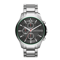 • In classic stainless steel with a black dial and red and green accents, this chronograph watch by Armani Exchange delivers sophisticated style with functional edge.