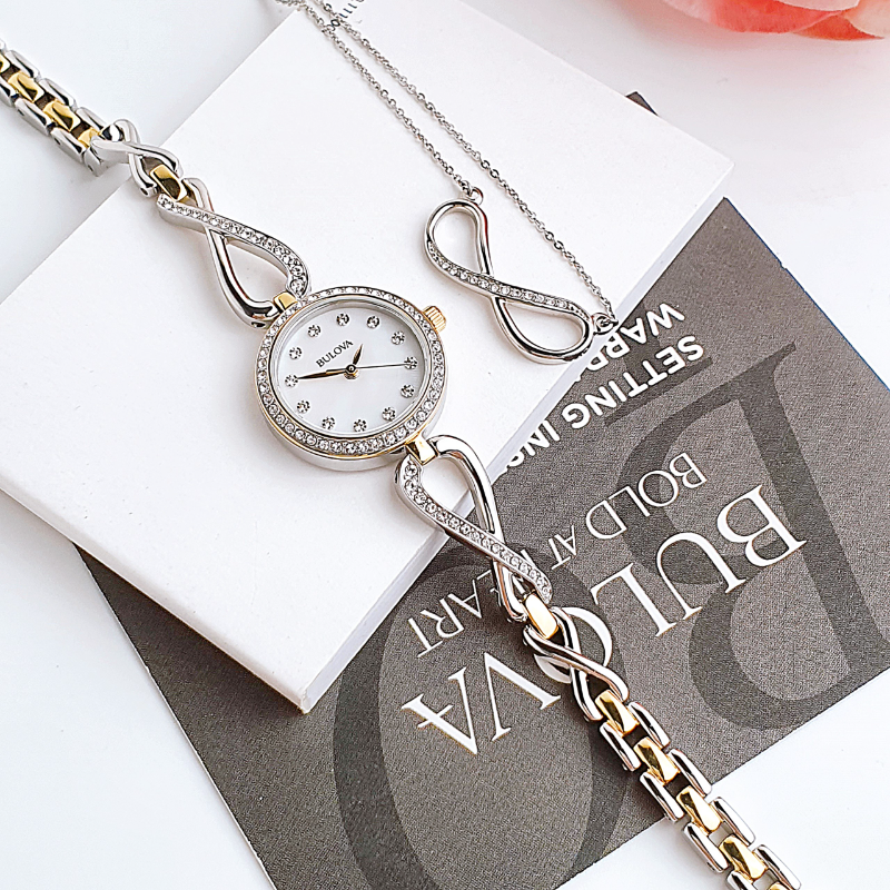 Bulova Analog Crystals Mother of Pearl Dial Silver Steel Strap Watch for Women - 98X109Bulova Analog Crystals Mother of Pearl Dial Silver Steel Strap Watch for Women - 98X109