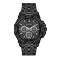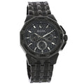 Multifunction dress watch adorned with 300 Swarovski® crystals on the black tone stainless steel case and strap with black dial. Water resistance up to 30 meters.