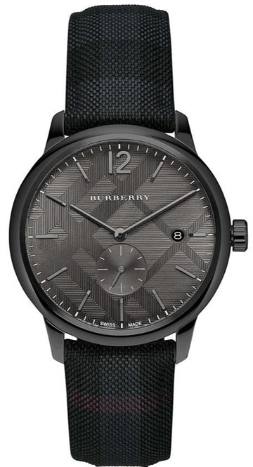 Burberry The Classic Round luxury analog unisex wristwatches with quartz movement, 40 mm diameter stainless steel case, mineral glass with sapphire treatment and Fabric strap
