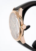 40mm Rose Gold PVD Plated Stainless Steel Case. Rose Gold PVD Plated Steel Bezel. Scratch Resistant Mineral Crystal.