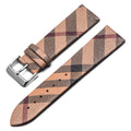 Brown Check Patterned Leather Strap with Stainless Steel Pin Buckle.