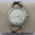 Burberry The City Nova White Dial Checked Leather Strap Watch for Men - BU9357