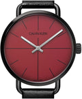 Calvin Klein Even Maroon Dial Black Leather Strap Watch for Men - K7B214CP