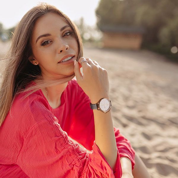 FEATURES: Analog, Gold, Leather, Stainless Steel