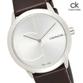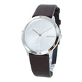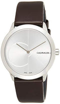 Calvin Klein Minimal Silver Dial Brown Leather Strap Watch for Men - K3M221G6