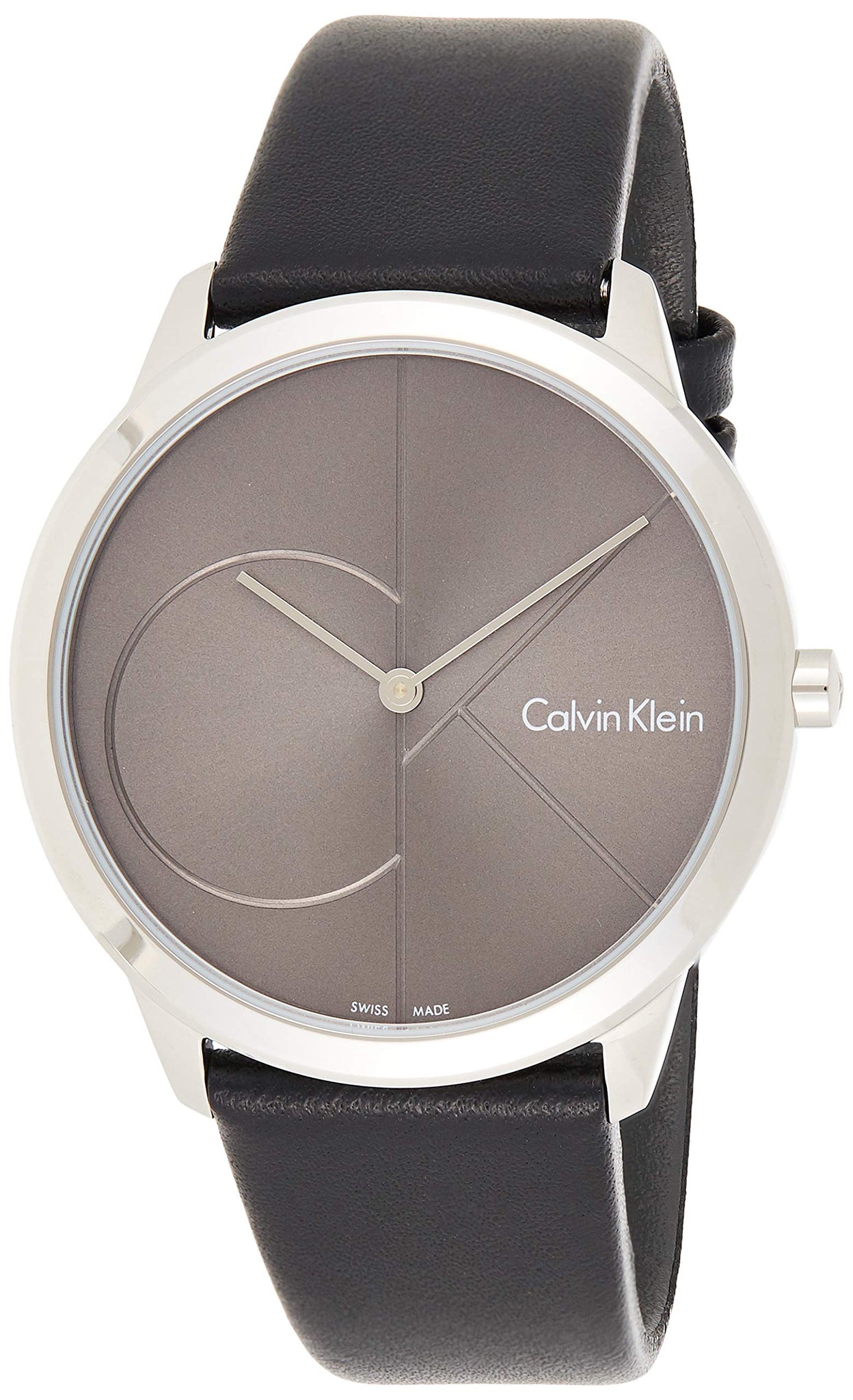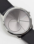 Calvin Klein Minimal Black Dial Black Leather Strap Watch for Men - K3M211C3