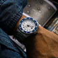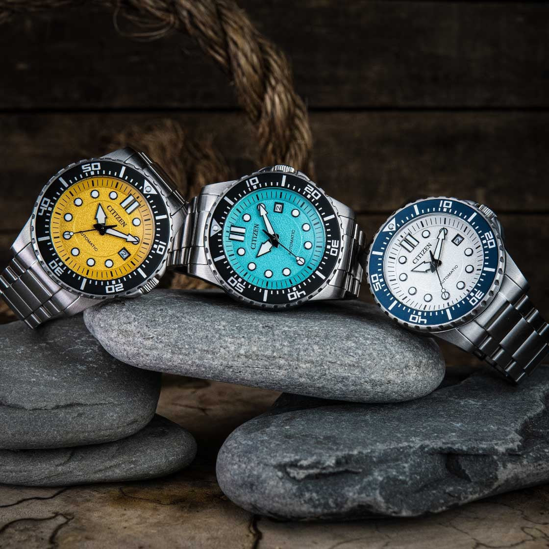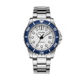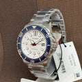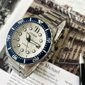 Citizen NJ0171-81A Metal Band Men Watch. The case is made out of silver stainless steel with a blue bezel, which stands for the high quality of the item, it has a white color dial. This model has got 100 meters of water resistance. it can be worn in scenarios where it is likely to be splashed but not immersed in water and will be fine in rain. The watch is shipped with an original box and a guarantee from the manufacturer.