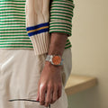 This new TSUYOSA model NJ0151-88Z is the modernized version with a larger case (40 mm), a loupe above the date window at 3 o'clock as well as luminous hands and luminous indexes. The 8210 caliber ensures precise timekeeping, while the resistant sapphire glass resists scratches. The screw-down glass case back ensures safe handling. Many elements of the original watch have been saved, such as the crown, which sits at the 4 o'clock position to keep the slim silhouette of the watch.