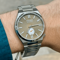 This new TSUYOSA model NK5010-51X is the modernized version with a larger case (40 mm), luminous hands and luminous indexes. This TSUYOSA Small Second not only has a new dial variant, but also another mechanical caliber. This mechanical caliber is equipped with a power reserve of 60 hours and guarantees the user an exceptional level of comfort. The 8322 caliber ensures precise timekeeping, while the resistant sapphire glass resists scratches. The screw-down glass case back ensures safe handling. Many elements of the original watch have been saved, such as the crown, which sits at the 4 o'clock position to keep the slim silhouette of the watch.