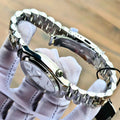 Additional features of the NJ0150-81A feature 3 hands and a day & date function at the 3'o clock marker. It has a water resistance rating up to WR50m / 5 bar. The mens NJ0150-81A has a case size of 40mm with a thickness of 11.7mm. The lug-to-lug size is 45mm. The NJ0150-81A is fitted with a flat anti-reflective Sapphire crystal glass with a cyclops over the date window at the 3 o'clock marker. The bezel is a smooth fixed bezel with a high polish finish. The watch weigh approximately 140gm.