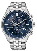 Citizen Eco Drive Chronograph Blue Dial Silver Steel Strap Watch For Men - AT2140-55L
