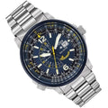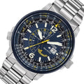 The Blue Angels are the Navy's elite flight demonstration squadron renowned for their precision and grace showcased in each of their flight maneuvers. This precision and grace is exhibited in the CITIZEN Blue Angels Nighthawk seen here with a navy blue ion-plated stainless steel case, stainless steel bracelet and navy blue dial with bright yellow accents. A watch powered by any light with Eco-Drive Technology featuring 12/14-hour time, pilots rotating slide ring and date. Caliber number B877. Anti-Reflective Mineral Crystal Blue Dial Promaster 5-year limited manufacturer’s warranty, with an additional 1-year warranty upon registering your watch with Citizen