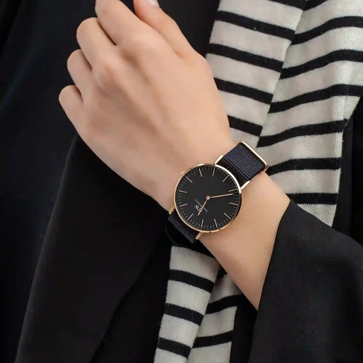 Get ready to elevate your style with the Daniel Wellington Classic Cornwall watch for women. This stunning timepiece features a sleek black dial and a classic black NATO strap, providing a sophisticated and timeless look. Crafted with precision, this watch is the perfect addition to any outfit, making it a must-have for every fashionable woman.