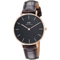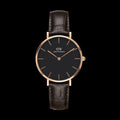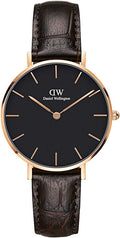 Daniel Wellington Classic Petite York Black Dial Brown Leather Strap Watch For Women - DW00100170
