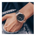Daniel Wellington Iconic Link 36 Rose Gold Black DW00100210 is a classical accessory to complete any look. Its rose gold-colored wristband and case are made of surgical 316L stainless steel, and has a real rose gold-plating. The 36 mm wide case is has a stylish black dial which is protected by a mineral glass and topped with applied indices. The DW00100210 watch belongs to the 30m / 3atm waterproof class, ie it is splash proof.