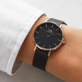 Daniel Wellington Petite Ashfield Black Dial Black Mesh Strap Watch For Women - DW00100202