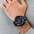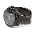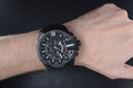 This eye catching design is part of the Mega Chief collection from Diesel. This watch is made from black ion-plated steel and features a big 51mm case. The black dial features high-vis baton hour markers and hands. It also features date function, chronograph and is 100m water resistant. Fastens with a black metal bracelet and powered by a quality quartz movement. The details on this timepiece just pop out effortlessly and looks fantastic on the wrist.
