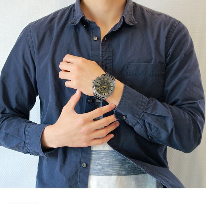 The Diesel, Mega Chief series features a stainless steel 51mm case, with a fixed bezel, a grey dial and a scratch resistant mineral crystal.