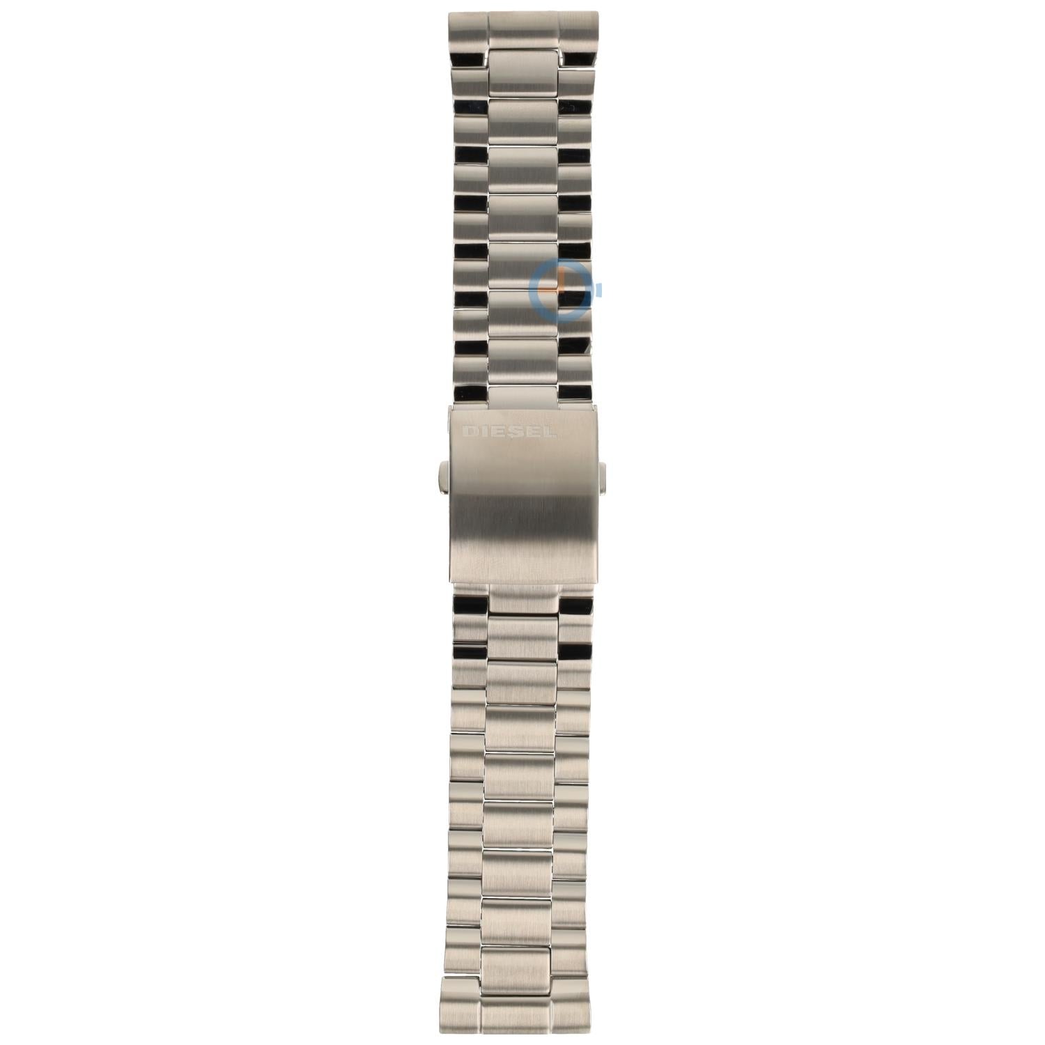 Diesel chronograph watch with 3 o'clock date, mineral glass, screwed back and pressure crown. Brushed steel bracelet with folding clasp and side buttons.