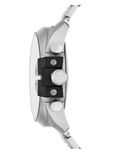 This 51mm Mega Chief watch features a silver dial with white stick indexes, chronograph movement and stainless steel bracelet.