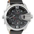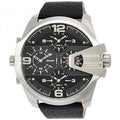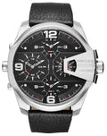 Diesel Uber Chief Oversized 4 Time Black Dial Leather Strap Watch For Men - DZ7376