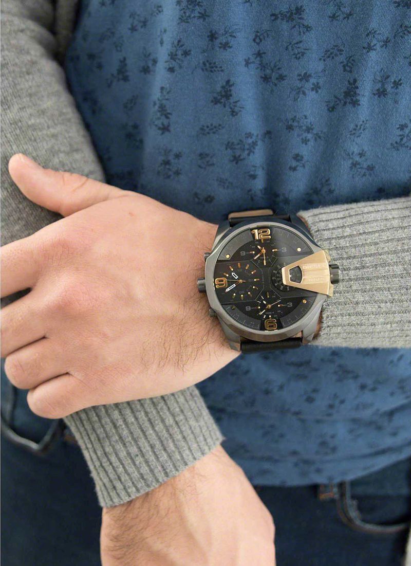 Diesel Uber Chief Two Hand Black Dial Black Leather Strap Watch For Men - DZ7377Diesel Uber Chief Two Hand Black Dial Black Leather Strap Watch For Men - DZ7377