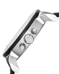 • Case size: 57mm; Band size: 28mm; quartz movement with 3-hand analog display, date window, and 3 chronograph subdials; mineral crystal face; imported
