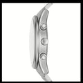 • The dial features white baton indices with a date aperture between 4 and 5 o’clock.
