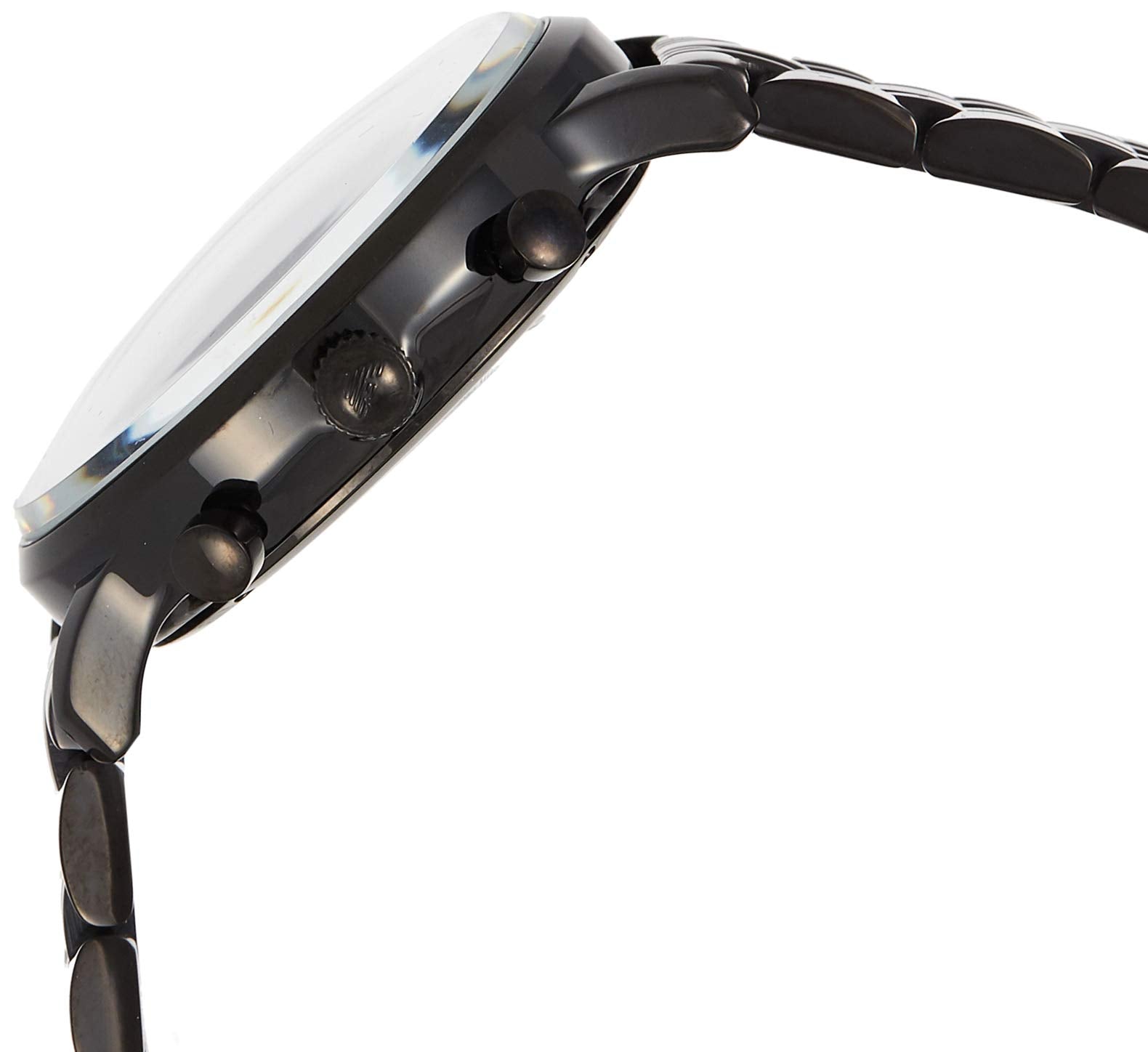 This Emporio Armani Chronograph Black Dial Men's Watch AR1934 comes in a black seven-link bracelet and polished case keep the focus on the stylish black sunray chronograph dial of this watch, accented with silver-tone stick indexes and a date window.