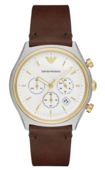 Emporio Armani Chronograph White Dial Brown Leather Strap Watch For Men - AR11033