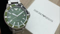 Emporio Armani Diver Chronograph Green Dial Silver Steel Strap Watch For Men - AR11500