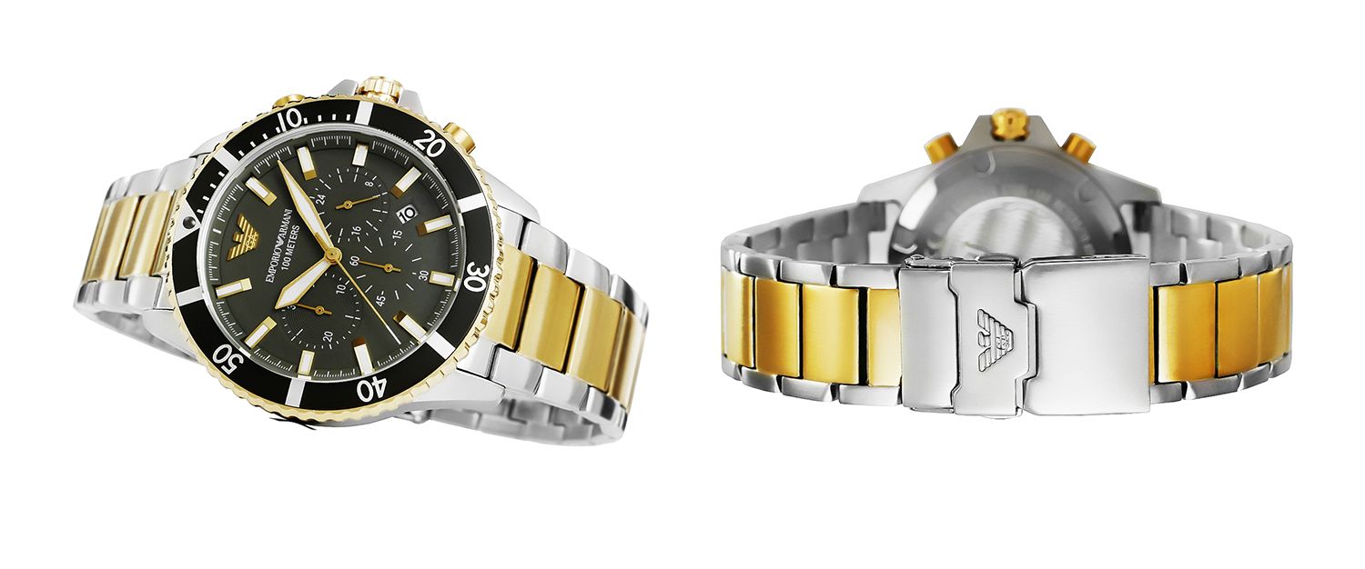 Emporio Armani Diver Chronograph Green Dial Two Tone Steel Strap Watch For Men - AR11361Emporio Armani Diver Chronograph Green Dial Two Tone Steel Strap Watch For Men - AR11361