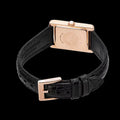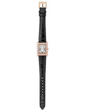 This Emporio Armani women’s watch pairs refined Italian craftsmanship with a minimalist sensibility, making it a standout in the luxury watches category. The rectangular 22 mm rose gold stainless steel case is accented with delicate crystal detailing, framing a silver sunray dial with bold Roman numerals and a signature logo at 12 o’clock. Powered by a reliable quartz two-hand movement, it offers both precision and understated elegance. The black leather strap, embossed with a crocodile texture and finished with fine stitching, adds timeless appeal while ensuring comfort and durability. With 5 ATM water resistance and a mineral crystal glass, this timepiece blends graceful design with everyday functionality.