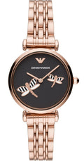 Emporio Armani Gianni T Bar Black Dial Rose Gold Steel Strap Watch For Women - AR11206