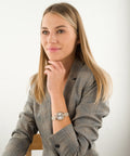Its stainless steel bracelet is covered with a pink PVD , thus recalling the femininity of this timepiece. The rice grain detail on the bracelet brings relief to the latter and thus underlines the elegance of its dial. Your accessory will close thanks to a butterfly folding clasp.