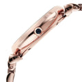 The Emporio Armani Ladies Gianni T-Bar AR11423 watch combines a 32mm round shaped rose gold tone stainless steel case and rose gold tone stainless steel bracelet with a push button deployment clasp.