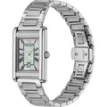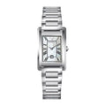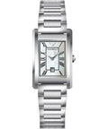 • Dial: Rectangle silver stainless steel case, with a glossy mother-of-pearl dial.