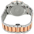 This 43mm watch features a matte white dial with rose gold-tone stick indexes and Roman numerals, chronograph movement and two-tone stainless steel bracelet.